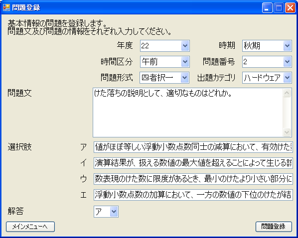 問題番号や年度は、リストから選ぶほか、事由に入力できますが