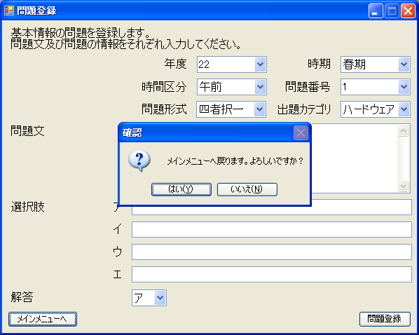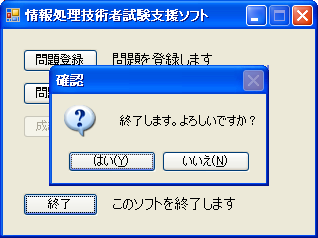M終了ボタンをクリックし、はいボタンを押すと登録した問題をセーブし終了します。