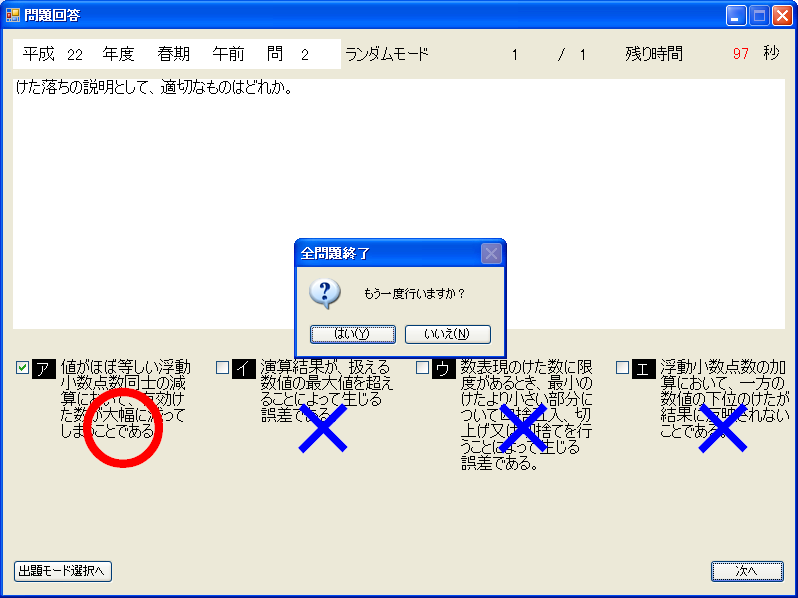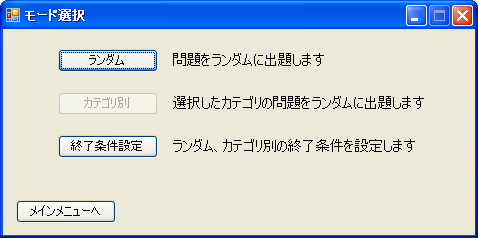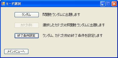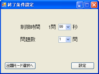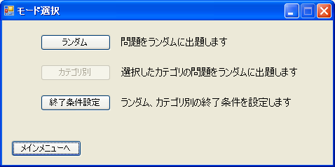 途中でやめたい場合は、出題モード選択へボタンをクリックしても良いです。